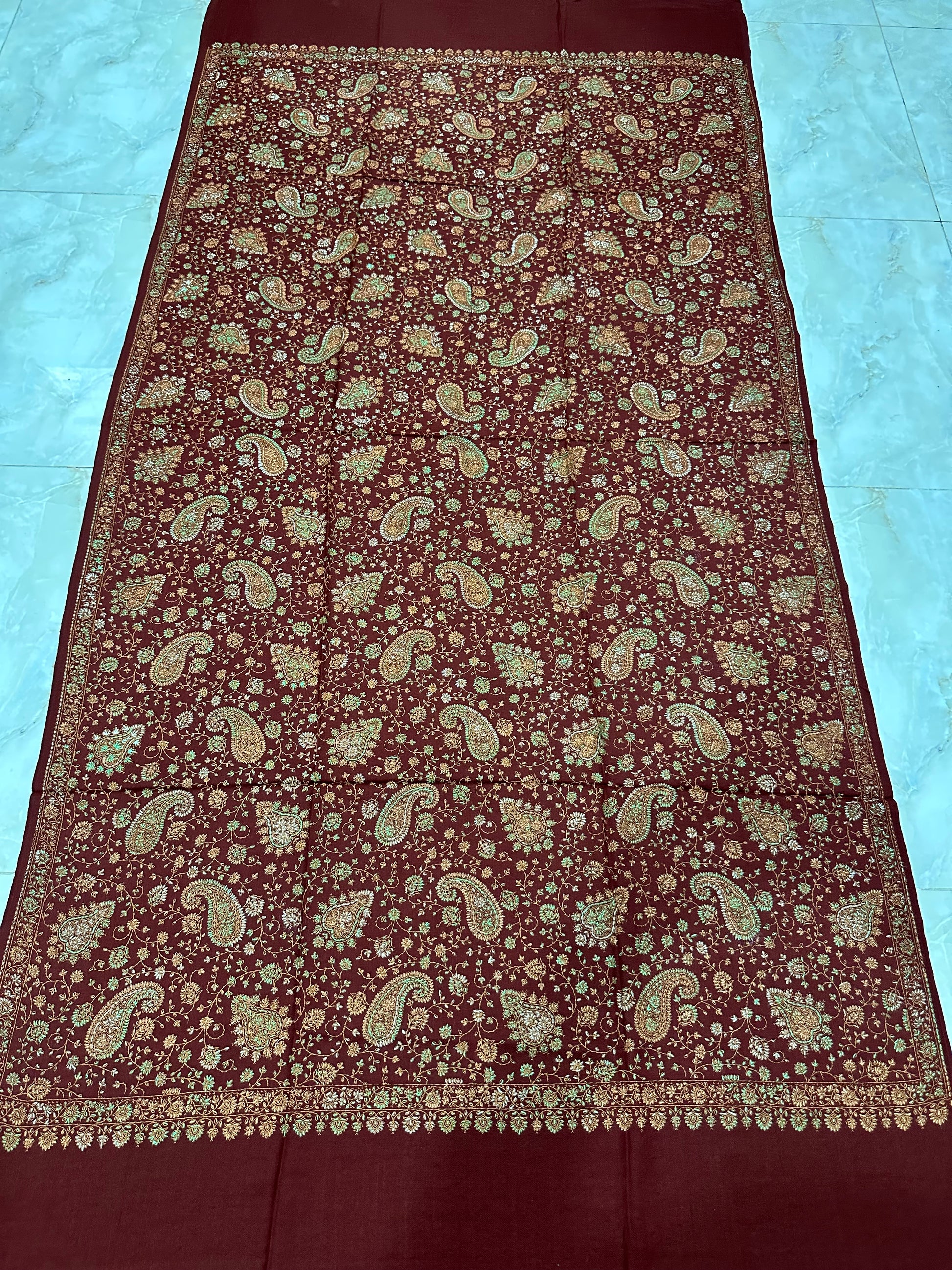 Expertly handcrafted by Maharaja Handicrafts, the Sui Jama Pashmina Shawl is a luxurious addition to any wardrobe. Made from soft and warm Pashmina, this shawl boasts a traditional Sui Jama design. Elevate your style and stay cozy with this exquisite and authentic shawl.