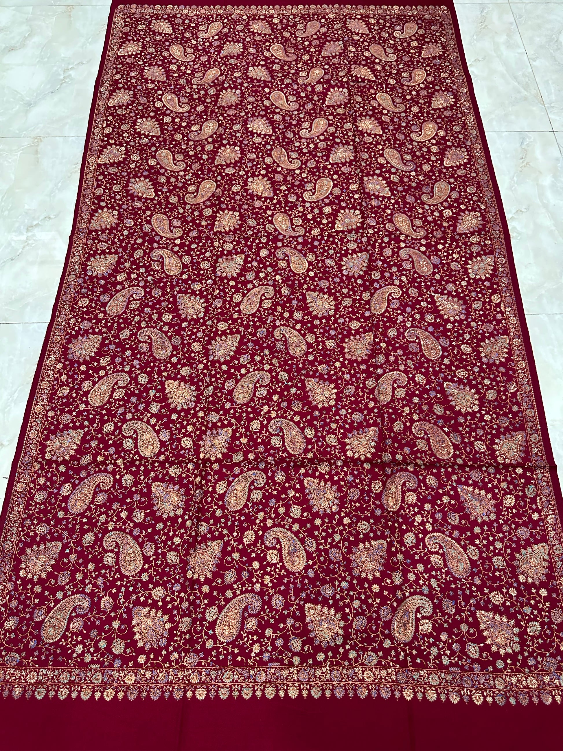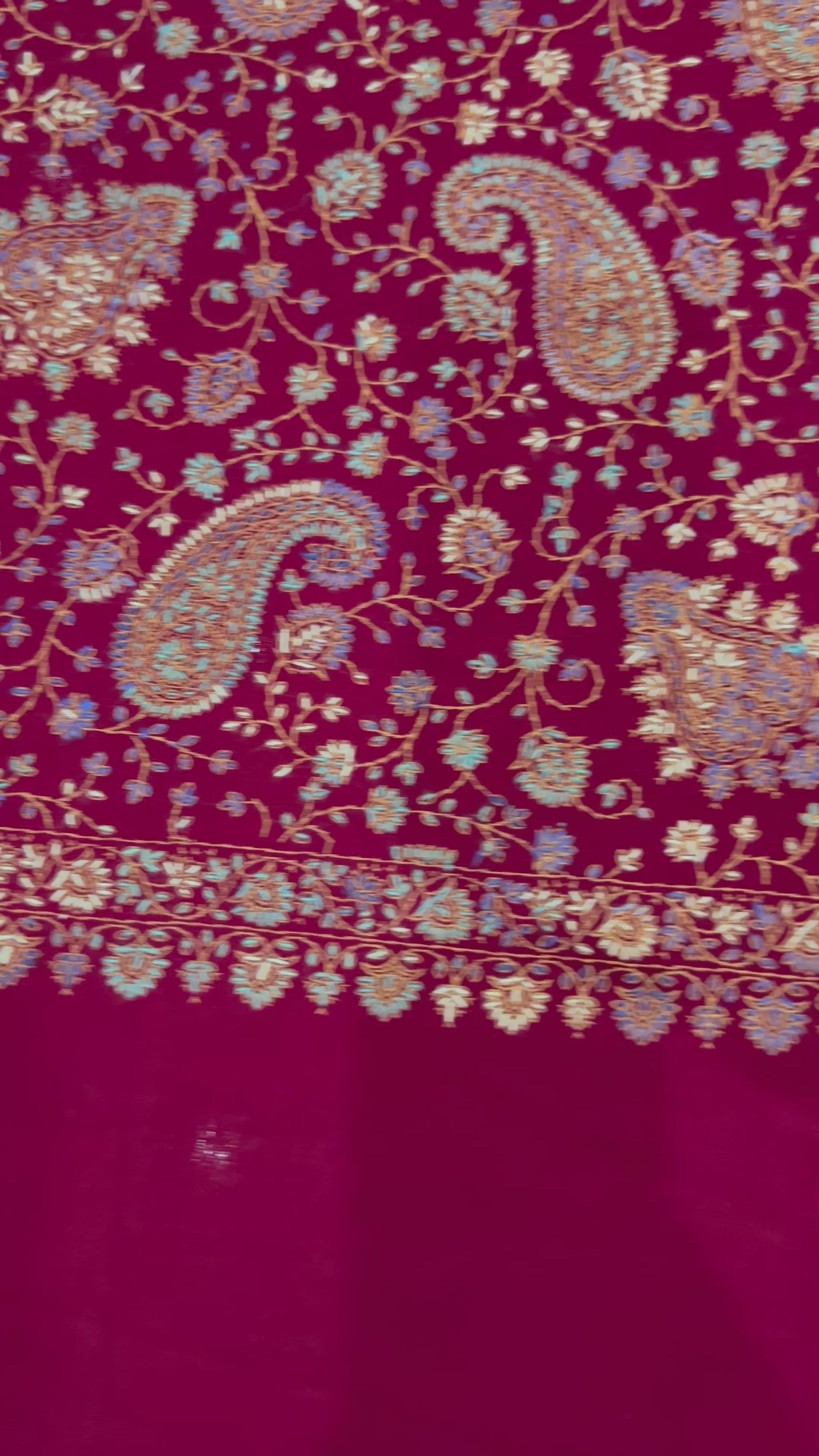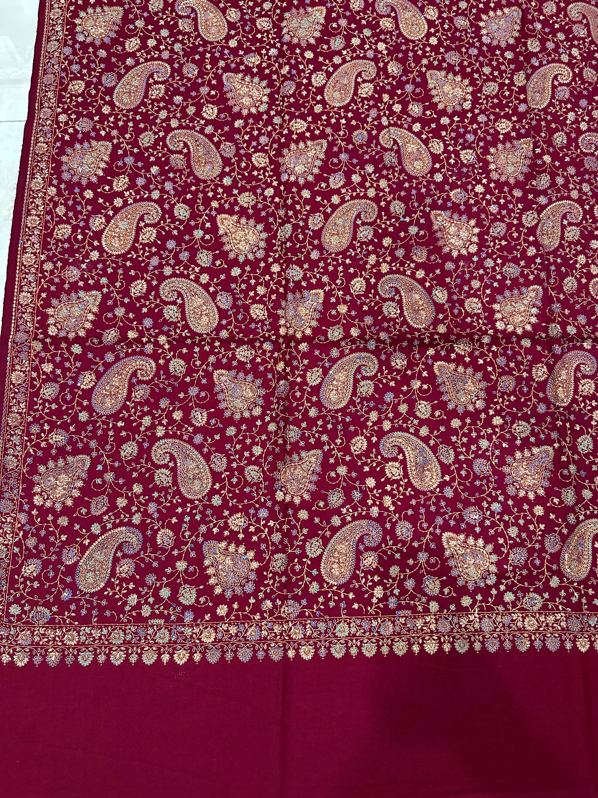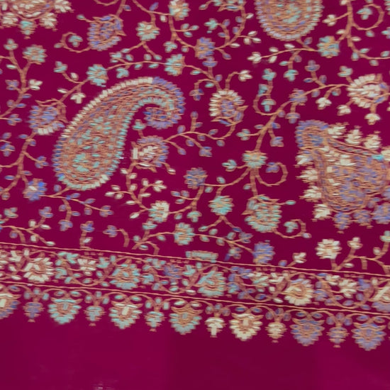 Expertly handcrafted by Maharaja Handicrafts, the Sui Jama Pashmina Shawl is a luxurious addition to any wardrobe. Made from soft and warm Pashmina, this shawl boasts a traditional Sui Jama design. Elevate your style and stay cozy with this exquisite and authentic shawl.